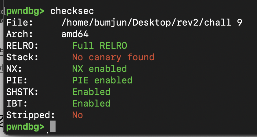 디버깅을 하기 앞서서 checksec 명령어를 통해 PIE 여부를 확인해보면 PIE가 enabled 되어 있는 것을 확인할 수 있다.