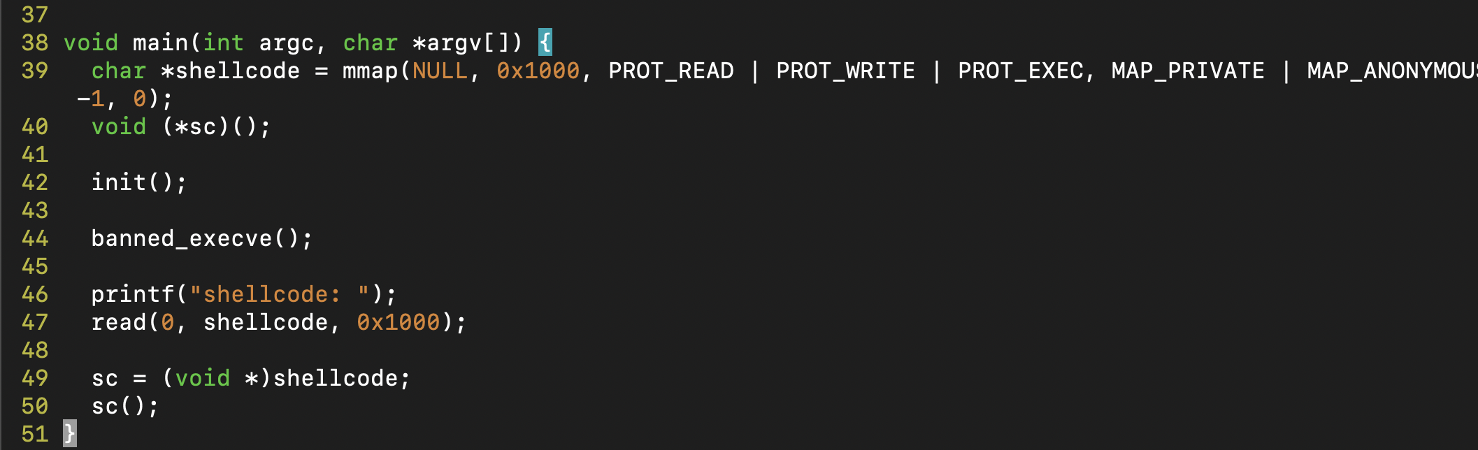 shell_basic.c 파일을 보면 main 함수에서 banned_execve() 함수가 있는 것으로 보아 execve 셸코드를 통한 공격은 막아 놓은 것 같다. 따라서 orw 셸코드를 작성하여 공격을 해보자