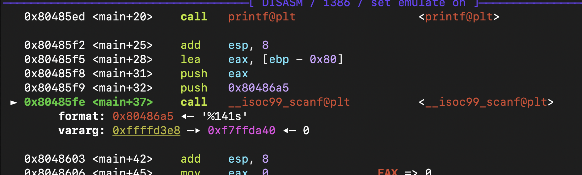 basic_exploitation_000.c 코드를 확인해보면 scanf에서 최대 141 바이트만큼 입력을 받고 있는 것을 알 수 있다.