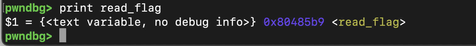 read_flag() 함수의 주소 : 0x80485b9