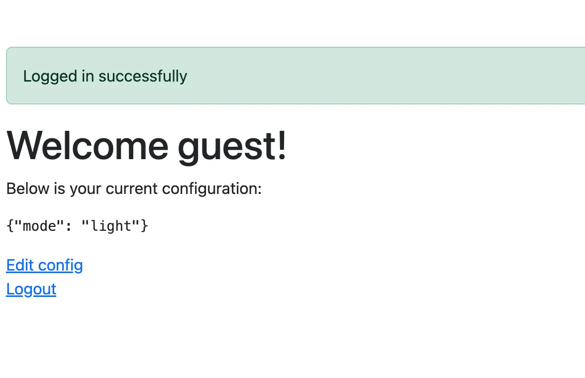 guest/guest로 계정 생성 후 로그인 하면 위와 같은 화면이 나온다. 그리고 Edit config 버튼을 눌러서 /config 엔드포인트에 접근하면