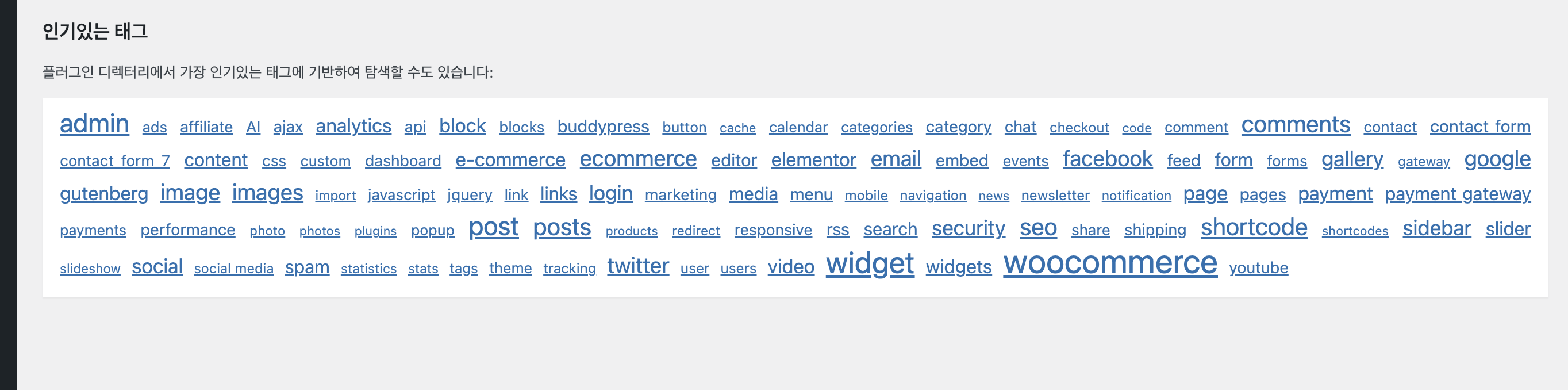 워드프레스 플러그인의 취약점을 스캔하기 위해서는 일단 플러그인들을 다운받아야 한다. 나는 wp를 로컬에서 열어서 wp-admin/plugin-install에 있는 인기 태그들을 기준으로 플러그인을 수집했다.