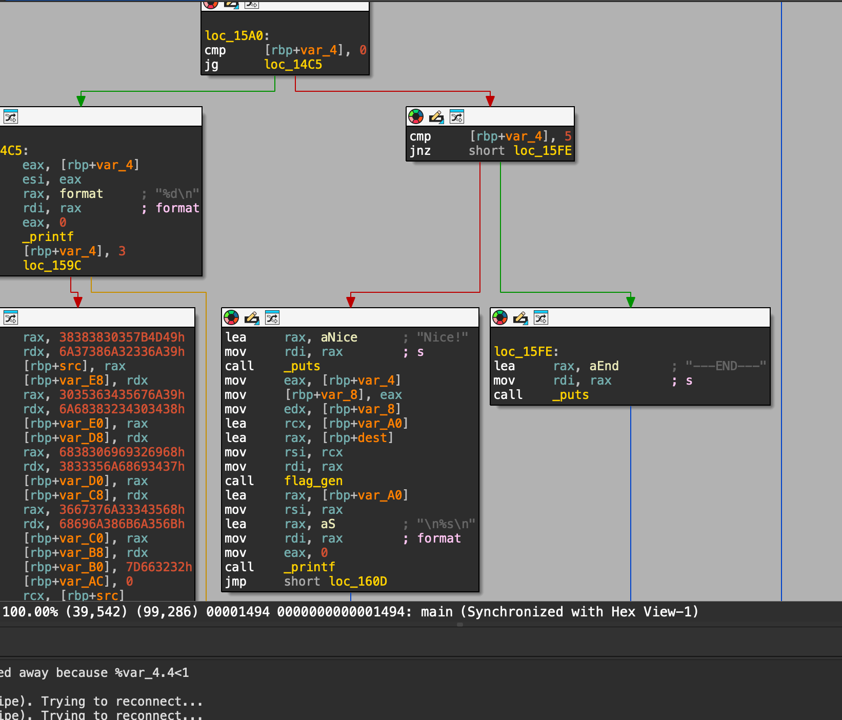 위의 코드를 확인해보면 [rbp+var4]의 값이 5와 같아야 "Nice!"라는 문구를 출력한다. 따라서 [rbp+var4]의 값이 5와 같아지도록 gdb를 활용하여 수정해야한다.